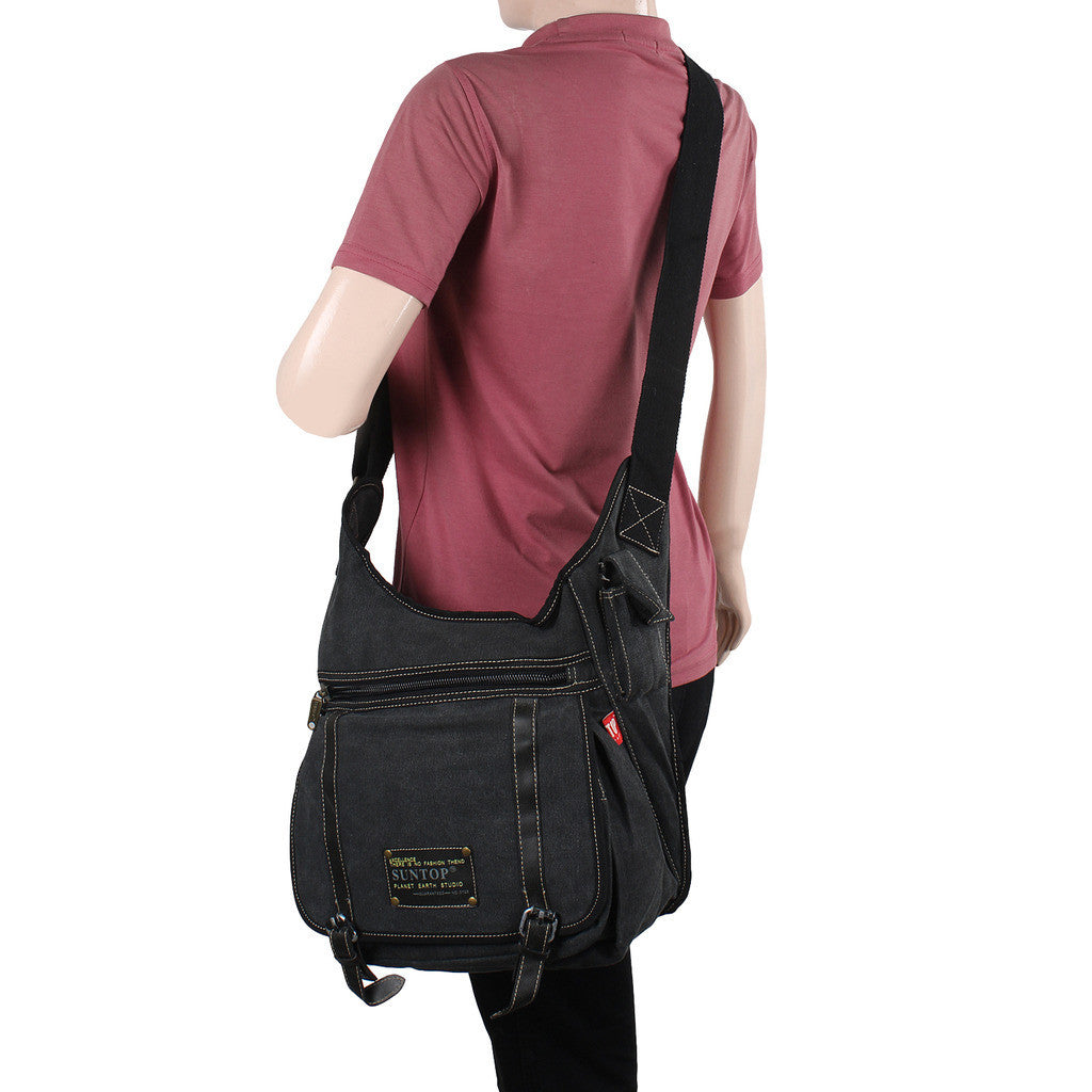Suntop Men Black Cotton, Canvas Sling Bag(Black) - testSuntop